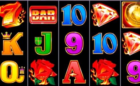 The theme embraces classic slot imagery with a fiery twist. A blazing backdrop frames the reels, while symbols include crimson roses, gleaming bells, traditional cherries, lemons and stylized sevens. This palette of reds, golds and oranges reinforces the “burning” motif and keeps the reels vibrant.